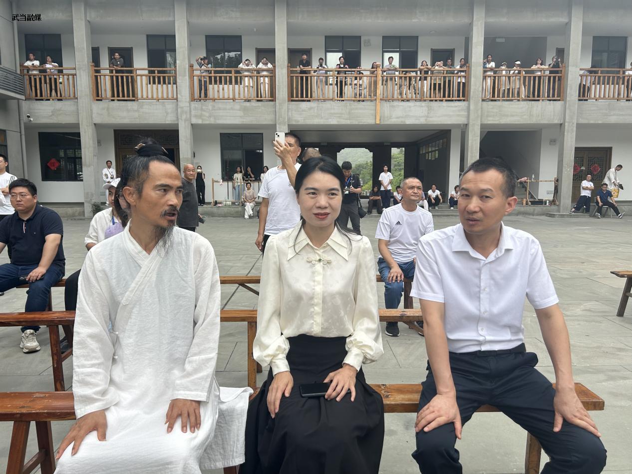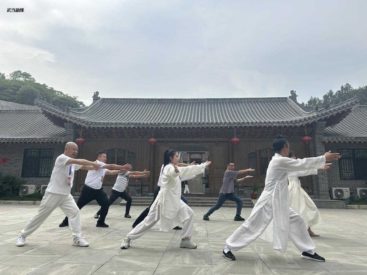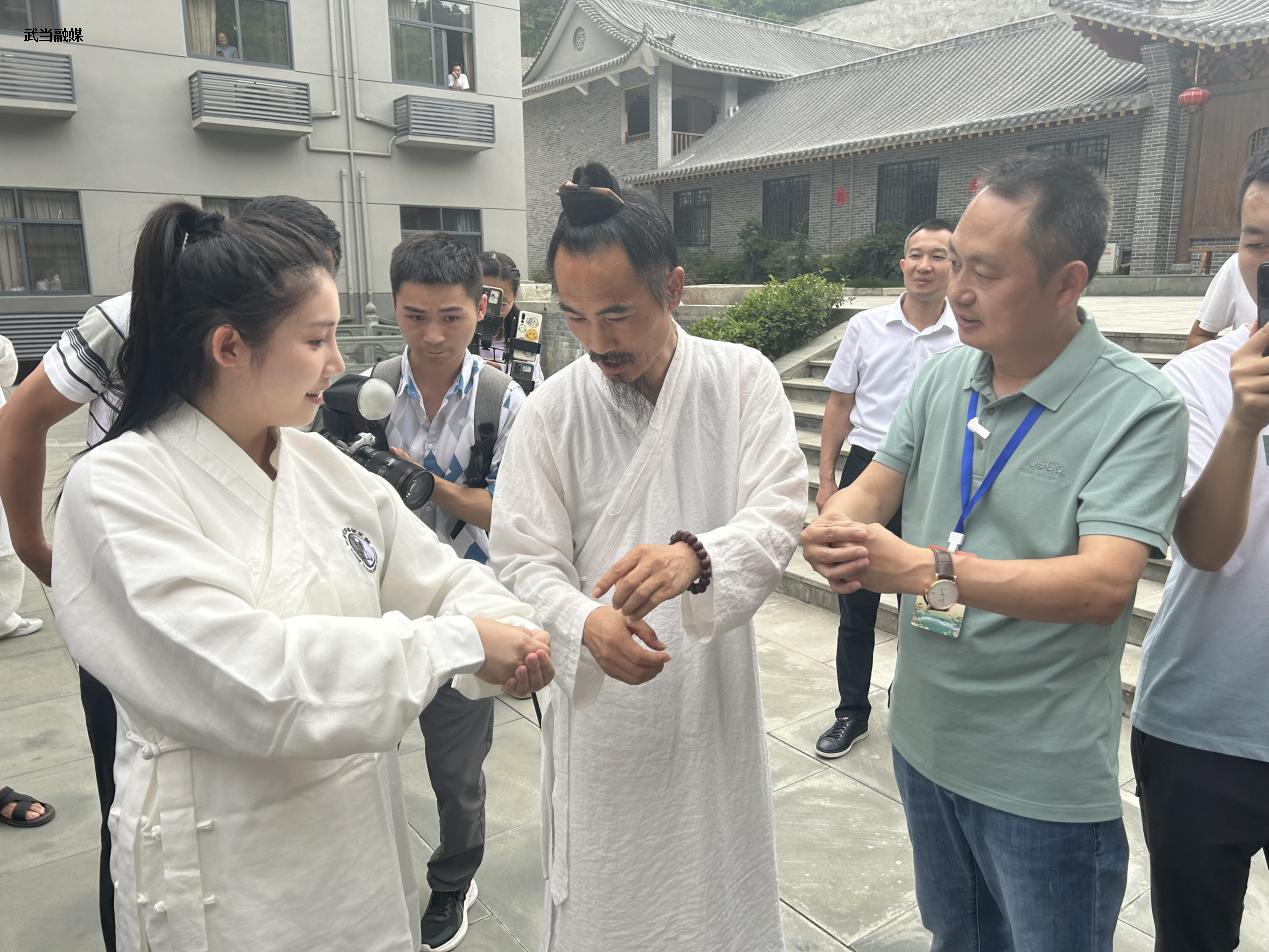 随后,嘉宾们来到武当道家传统武术院,观看精彩绝伦的武术表演。武当拳法、武当剑、太乙拂尘以柔克刚、以静制动、刚柔相济的特点让嘉宾们感受到武当武术的浓厚魅力,表演震撼人心,让人目不暇接,现场掌声雷动。随后,袁师懋馆长现场教授道家手势拱手礼和武当养生秘籍八段锦,嘉宾们纷纷跟练,并表示武当养生让人放松身心,效果卓群。