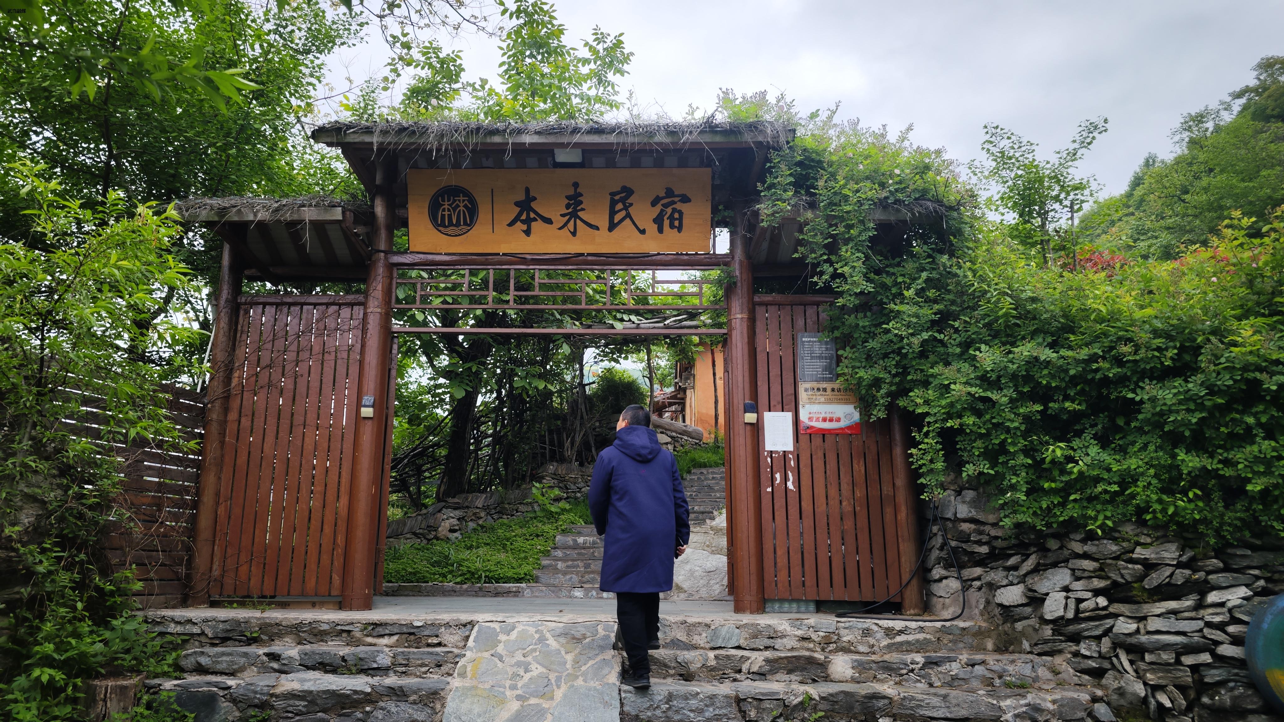 位于景区内的本来民宿是武当山海拔最高的民宿。门前,木柱、青石台阶、篱笆、野花等古朴的元素,别有一番雅韵,走进院内,金顶、紫霄宫等风景尽收眼底。