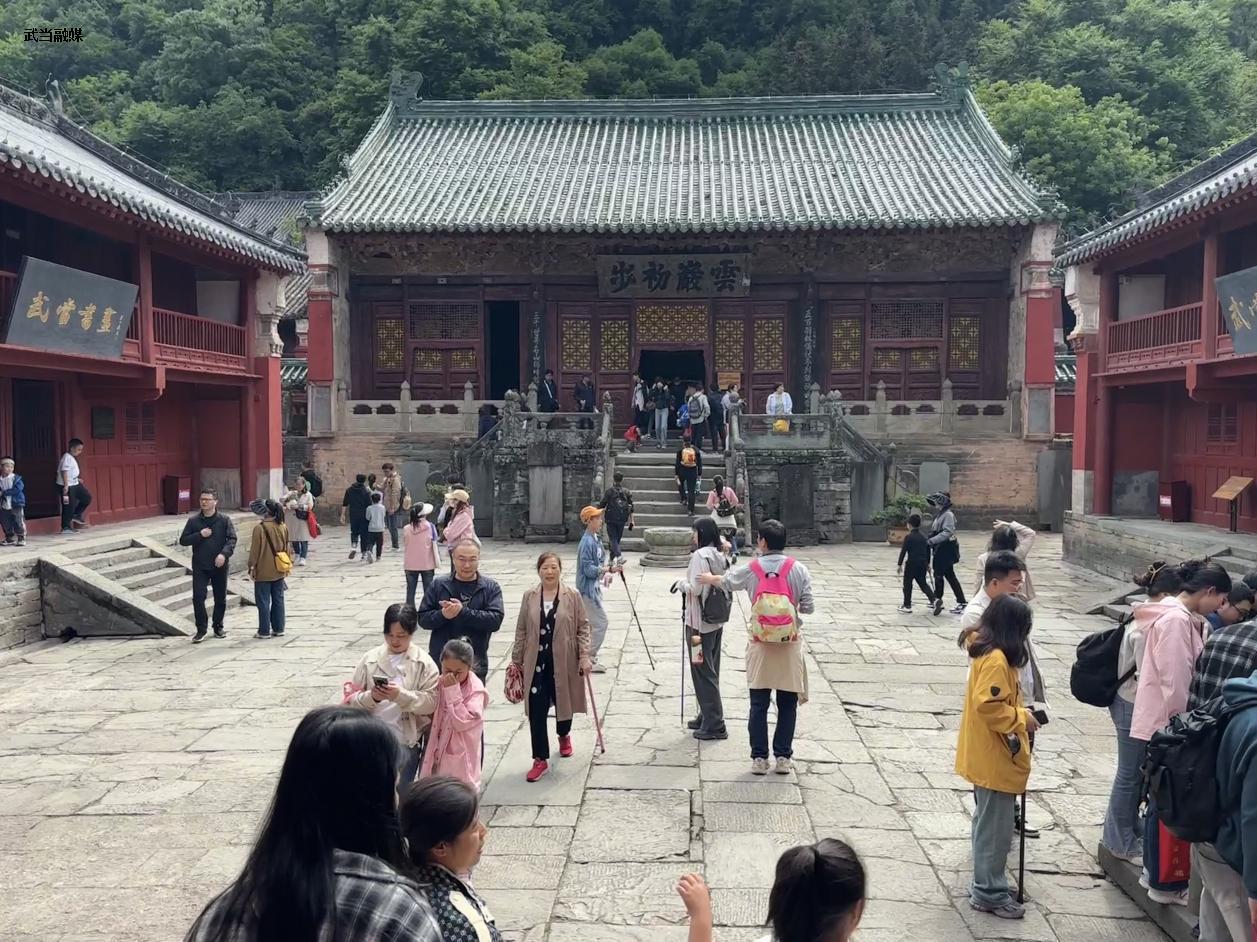 游客在紫霄宫拍照打卡、祈福。(通讯员 赵虎 摄)