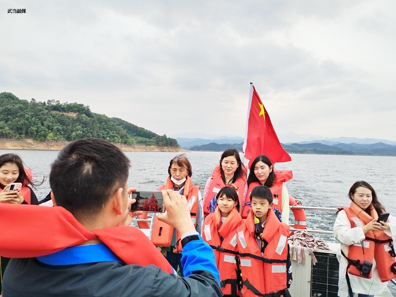烟雨中的武当山宛如一幅天然水墨画,让人流连忘返。在武当山景区、太极湖水上游等各景点,随处可见身披雨衣或者撑着雨伞的游客,他们漫步在红墙翠瓦的古建筑中,欣赏武当优美的风景,乘坐游船,感受碧波荡漾的太极湖,时不时拿起相机、手机拍照打卡,记录下雨中别样的武当。