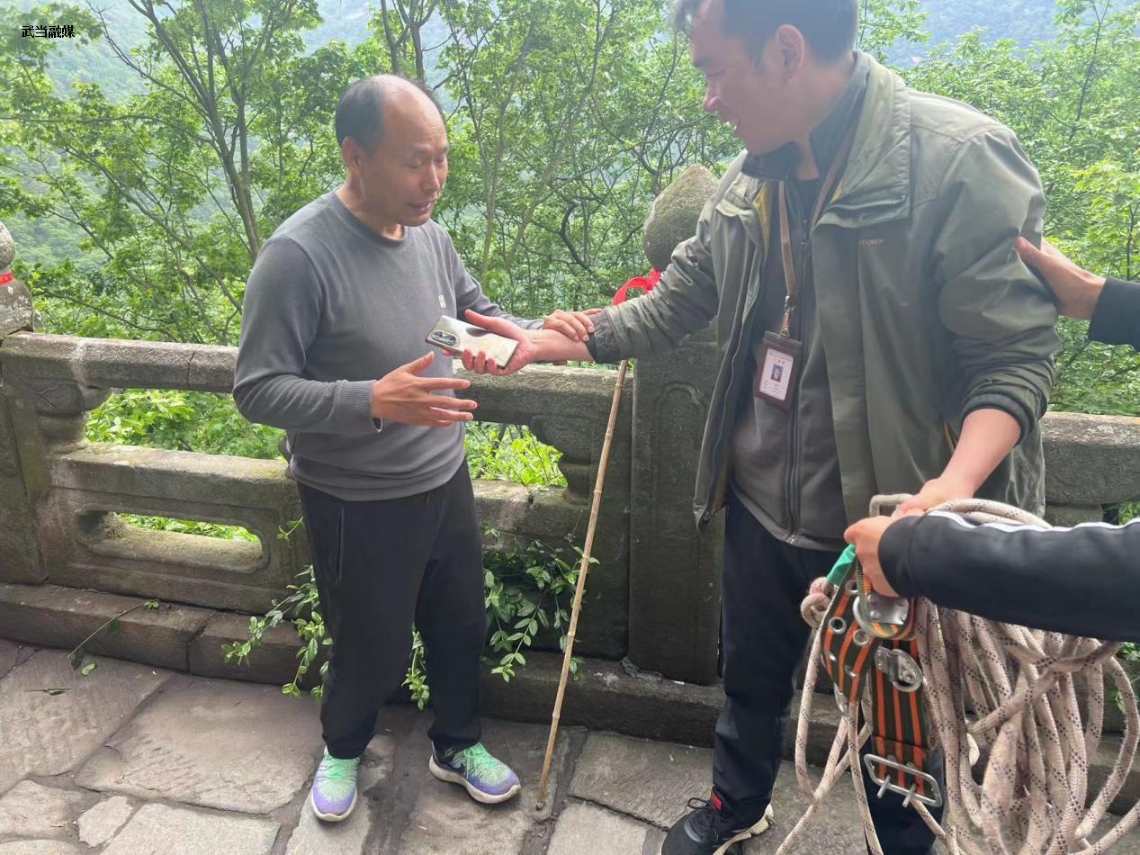 (通讯员 詹盛)“你好,我的手机不小心掉到护栏外的草丛里了,能帮忙捡回来吗?”5月4日下午,在南岩宫景区参观游览的一名游客着急地向景区工作人员寻求帮助。 了解情况后,工作人员立即来到现场查看情况,并联系同事取来安全绳。系好安全绳后,工作人员翻越护栏,攀爬到护栏外仔细寻找,最终找到了游客的手机。热心的服务受到游客称赞。
