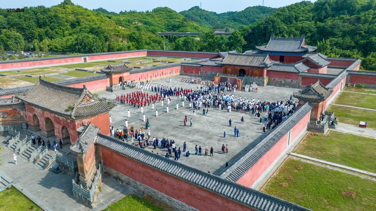“击鼓、奏武当道乐”。伴随着激昂的鼓声,悠扬清幽的武当道乐响起,甲辰年拜谒张三丰祖师大典活动5月16日在武当山遇真宫正式拉开帷幕。武当武术突出贡献专家、武术界嘉宾以及来自世界各地的武当武术传承人和武当弟子齐聚武当,通过拜谒仪式、文化展陈、武术交流、网络短剧等活动,向一代武术宗师张三丰致敬,传承弘扬武当文化。