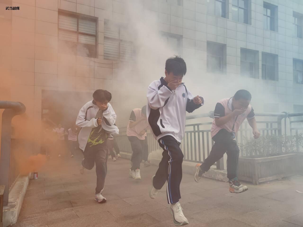 当天上午9点10分,随着消防警报的响起,一场消防疏散演练拉开帷幕。在模拟的火灾场景中,同学们迅速用湿毛巾、袖子或手捂住口鼻,采取弯腰低姿的方式,按照预先规划的路线有序撤离教学楼,并在安全地带进行人数清点后上报给总指挥。整个演练过程高效有序,展现出了良好的应急反应能力和消防安全素养。