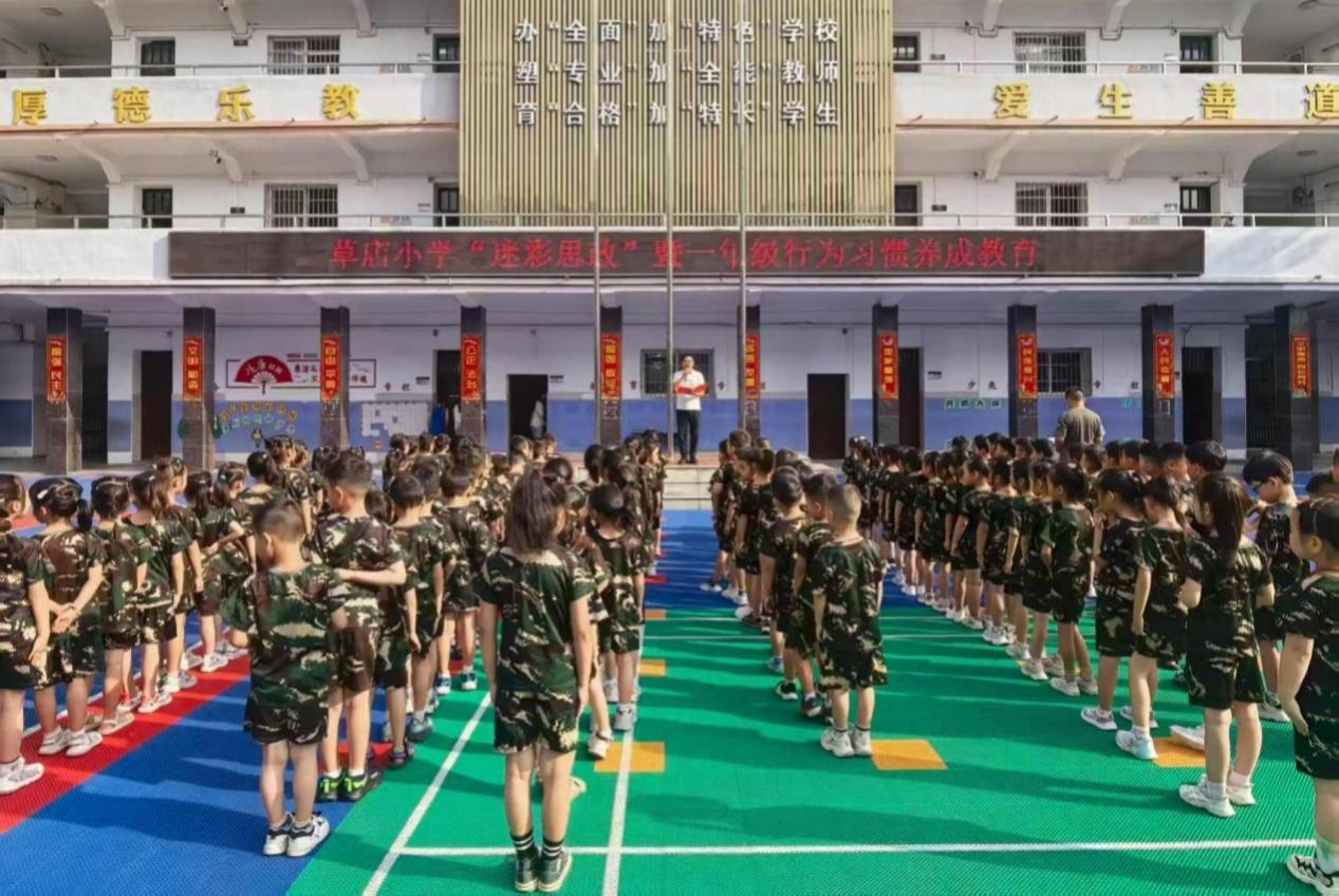 9月2日,草店小学“迷彩思政课暨一年级新生行为习惯养成教育”正式启动。学校围绕“薪火相传九十载 逐梦启航看草小”主题,开展了一系列丰富多彩的活动。队列训练中,学生们身姿挺拔,展现出坚韧的意志;革命故事宣讲环节,一个个动人的故事让学生们深刻感受到了先烈们的英勇无畏;红色歌曲传唱时,激昂的歌声在校园中回荡,厚植了学生们的家国情怀。通过一系列活动,不仅帮助新生快速适应校园生活,更让他们在耳濡目染中锤炼意志、涵养爱国品格。