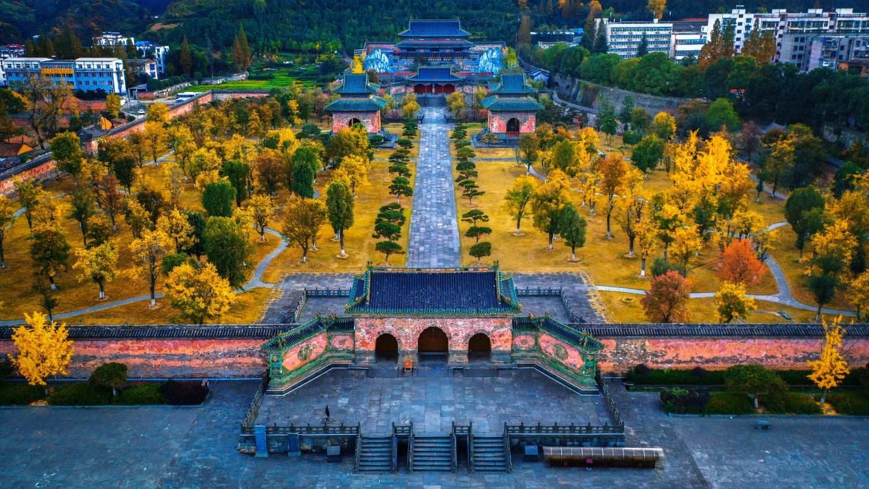 紫霄宫、南岩宫等地的百年银杏也会慢慢披上金纱,扇形叶片从浅黄渐变成耀眼的金黄,阳光穿过枝叶洒下满地碎金,与宫墙、飞檐相映,随手一拍都是古意满满的秋日大片。放眼望去,五彩斑斓、层林尽染,一片落叶、漫山红遍。