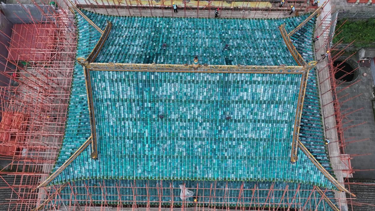 9月10日上午,记者在修缮项目现场看到,工人师傅正在分区域对脚手架进行拆除,同时对瓦件清洗。据施工方介绍,脚手架拆除工作从9月1号开始启动,目前已经拆除了总量的50%左右。按照施工方案,整个拆除工作预计到9月20号左右结束,同时还将对施工现场的物料、环境卫生进行清理,月底可以满足对外开放条件。