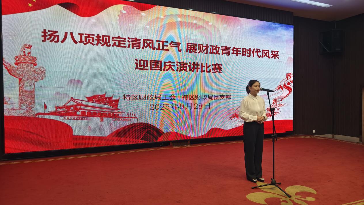 9月28日下午,武当山特区财政局举办“扬八项规定清风正气 展财政青年时代风采”迎国庆主题演讲比赛,13名青年选手同台竞技、各展风采。