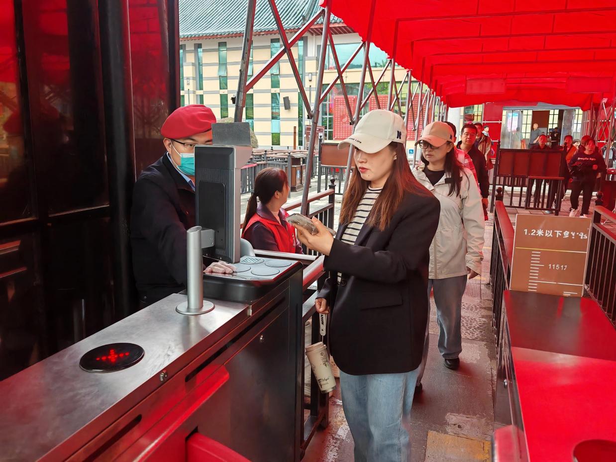 10月1日早上,游客中心入口,通过“武当山智慧旅游”小程序提前预约的武汉游客李女士扫码0.3秒入园。“扫码入园非常快捷,比进地铁还快,体验感非常好。”李女士说。