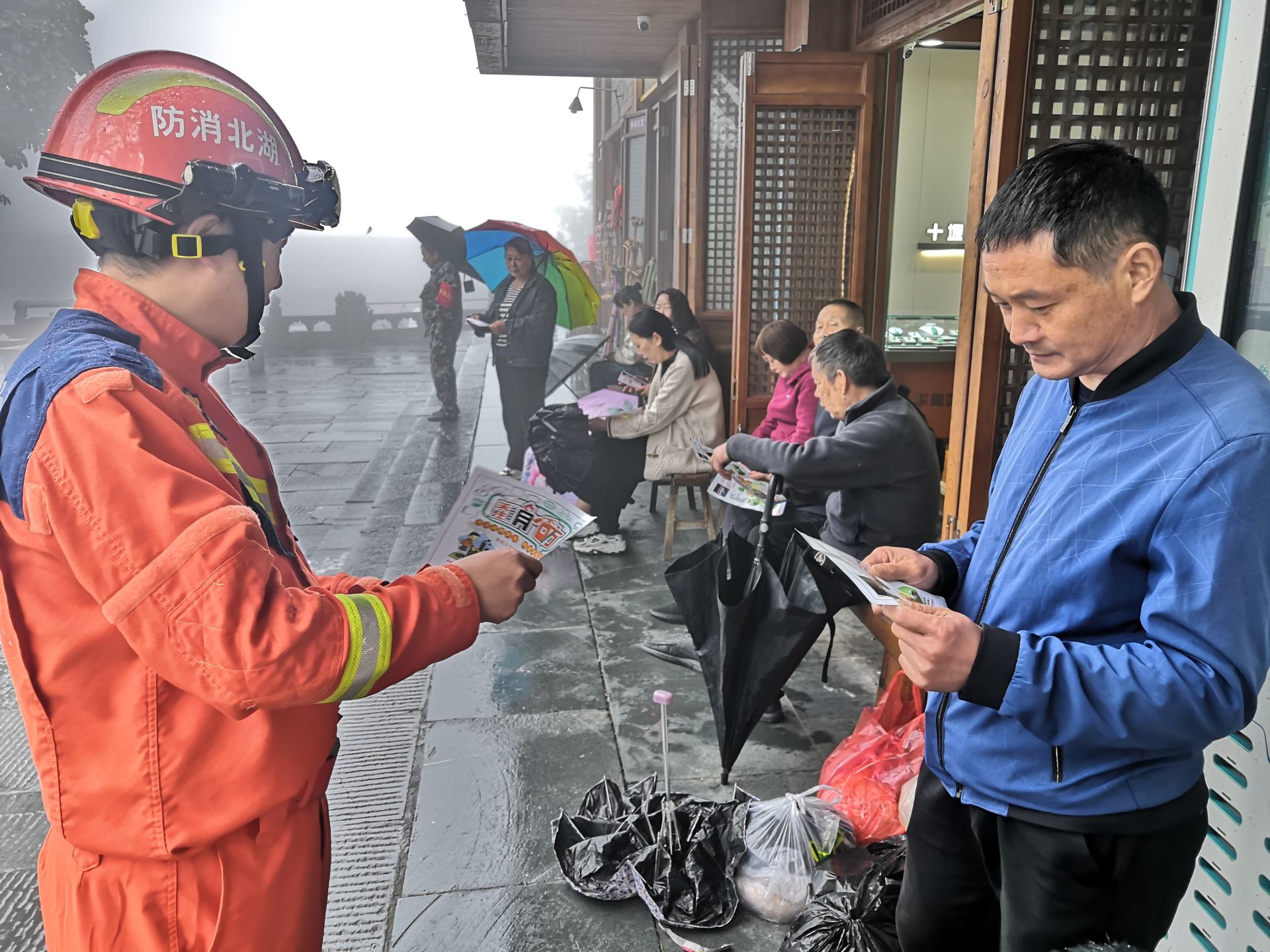 为进一步提升公众消防安全意识与自救互救能力,消防员还通过“发放宣传资料+现场讲解+互动体验”的形式在景区开展科普宣传活动,用通俗易懂的语言向游客普及“进山不携带火种、动火不离人、遇火会逃生”等消防安全知识,切实将安全理念传递给每一位游客。