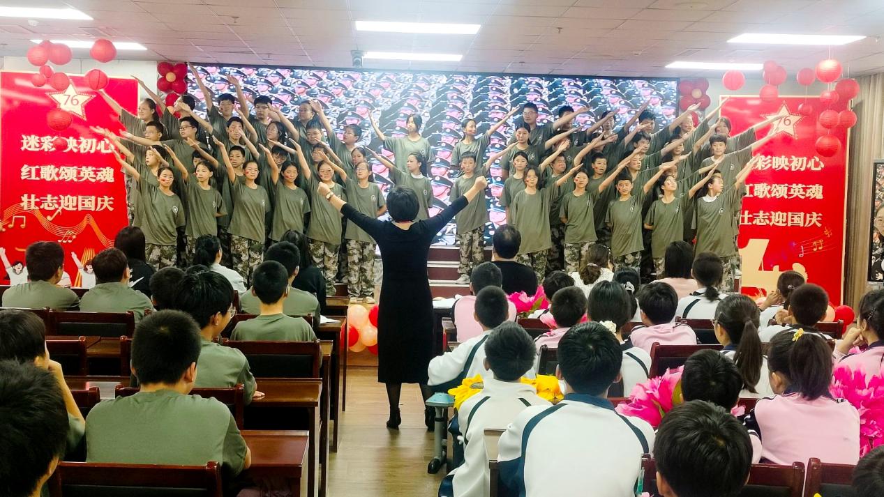 9月30日下午,武当山中学举办“青春颂祖国 歌声献华诞” 庆祝新中国成立76周年合唱比赛。比赛中,七、八年级学子先后唱响《国家》《强军战歌》《万疆》《如愿》等歌曲,老师们则登台演唱《没有共产党就没有新中国》《我和我的祖国》等曲目。师生的踊跃接唱,将爱国热情推向高潮。