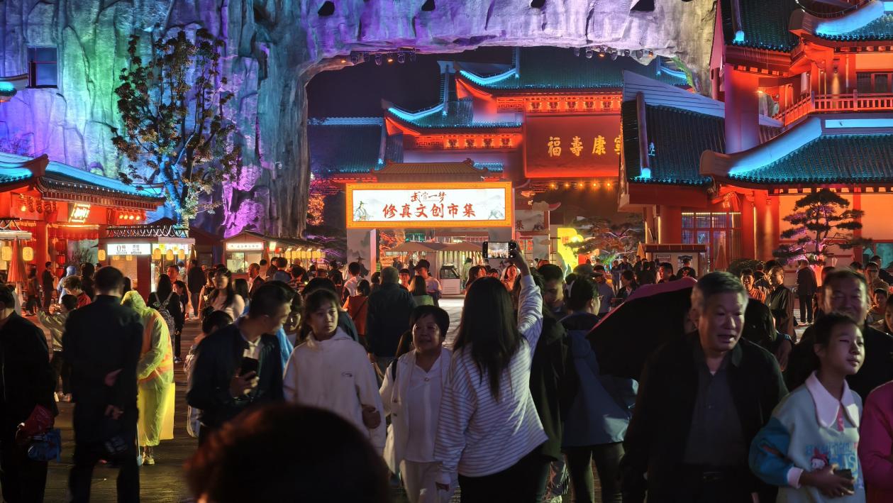 10月1日,“武当一梦”演艺园区凭借融合国风雅韵与仙侠奇想的沉浸式文化盛宴,迎来国庆假期首日客流高峰,园区内人潮涌动、欢声雷动。