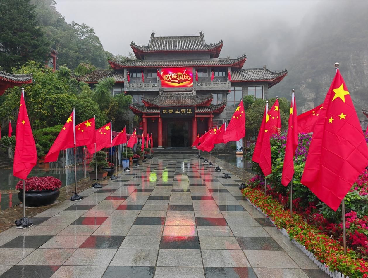 视觉盛宴升腾爱国情。在景区沿线、城区主干道、游客服务中心、琼台、紫霄宫等重点区域悬挂了1600面国旗,摆放数万盆节庆花卉,设置了30处“月满中秋,情系家国”特色打卡点,打造庄重热烈的视觉景观。同步开展非遗文化展演,在玉虚街、大岳武当城等场所常态化呈现道乐演奏、武当武术展演等活动,将节日喜庆与武当文化深度融合,打造“步步有景、处处见文化”的欢乐海洋。