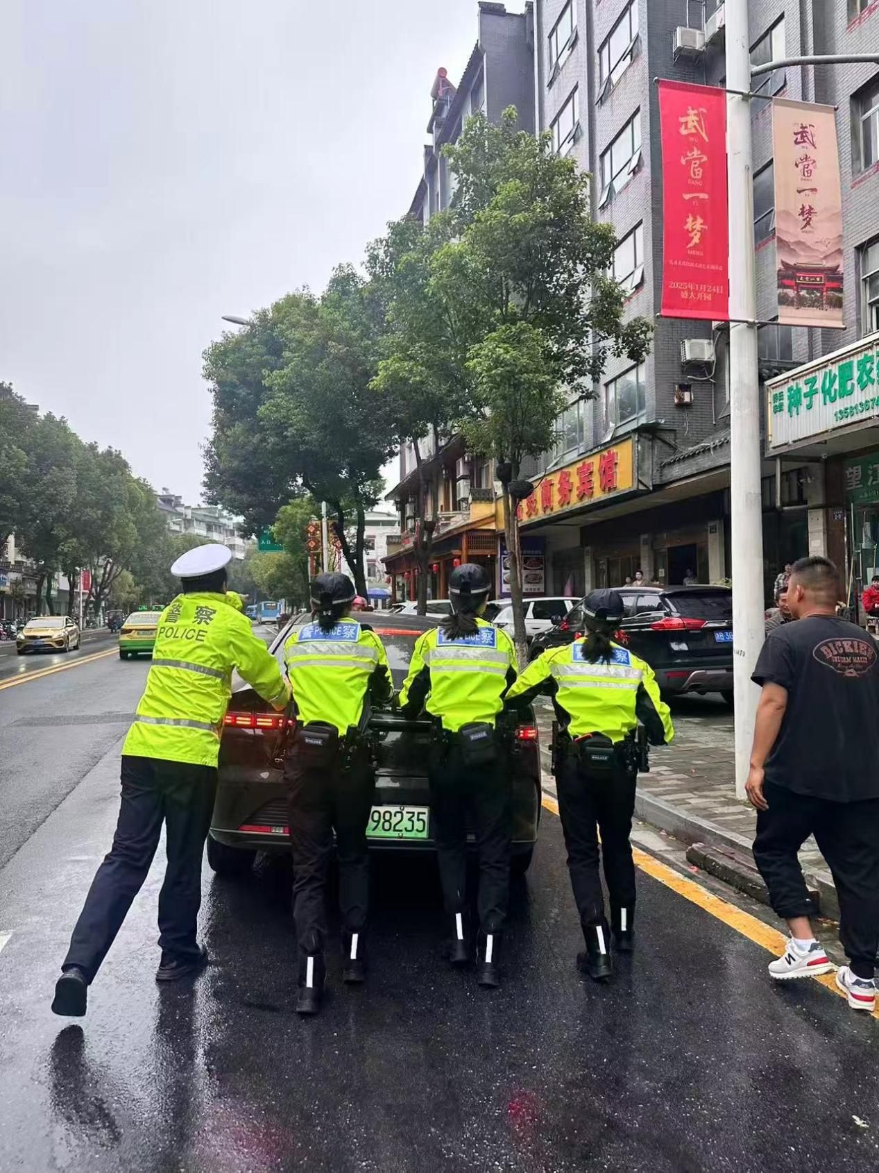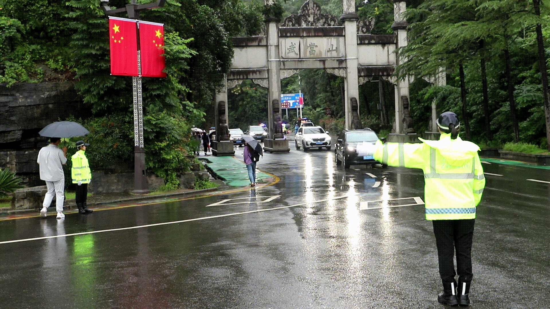 女子骑警队雨中坚守,在主干道疏导交通、提供服务,被赞“又美又飒”。交管大队全员上岗,额外提供路线咨询、寻人寻物等服务。据悉,十堰市公安局武当山特区分局每日投入170余名警力,划4个责任区由党委成员分片指挥,热门景点设定点警力,应急小组全天候待命。
