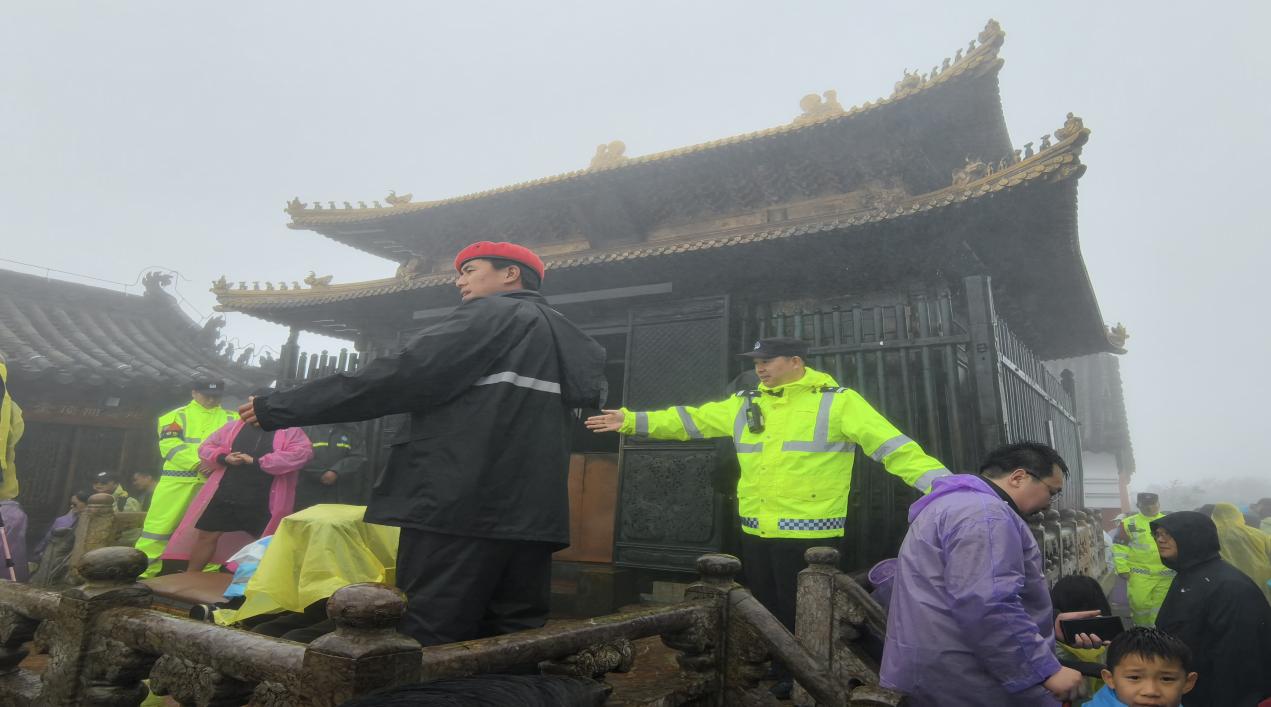 面对大客流,十堰市公安局武当山特区分局全员在岗,以“警车常巡、警灯常亮、警察常见”推进安保。老营派出所民警在景区入口引导秩序、排查隐患,索道站、金顶等重点区域警力值守疏导;骑警队快速处置车辆剐蹭事故,合力推走爆胎故障车恢复畅通;民警还联合消防,护送游客就医。