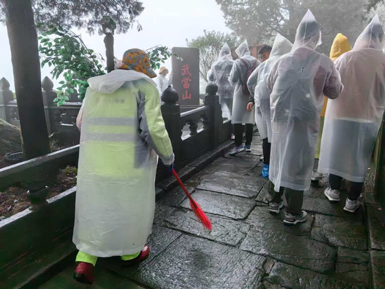 雨中的武当,因那一抹抹跃动的“橙”光而温润,更因这些风雨无阻的环卫工人而显得格外温暖与文明,他们用最朴实的行动守护着景区的干净整洁。