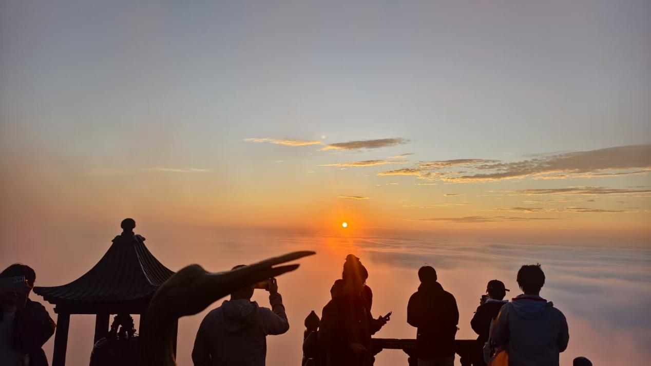 为赴这场“仙境之约”,不少游客提前规划行程:或夜宿金顶附近客栈,凌晨步行十余分钟至观景台;或从南岩等地凌晨三四点出发,沿古神道登山。金顶平台与分金岭等最佳观景点早早排起队伍,游客们裹着外套静待天光,相机早已准备就绪。