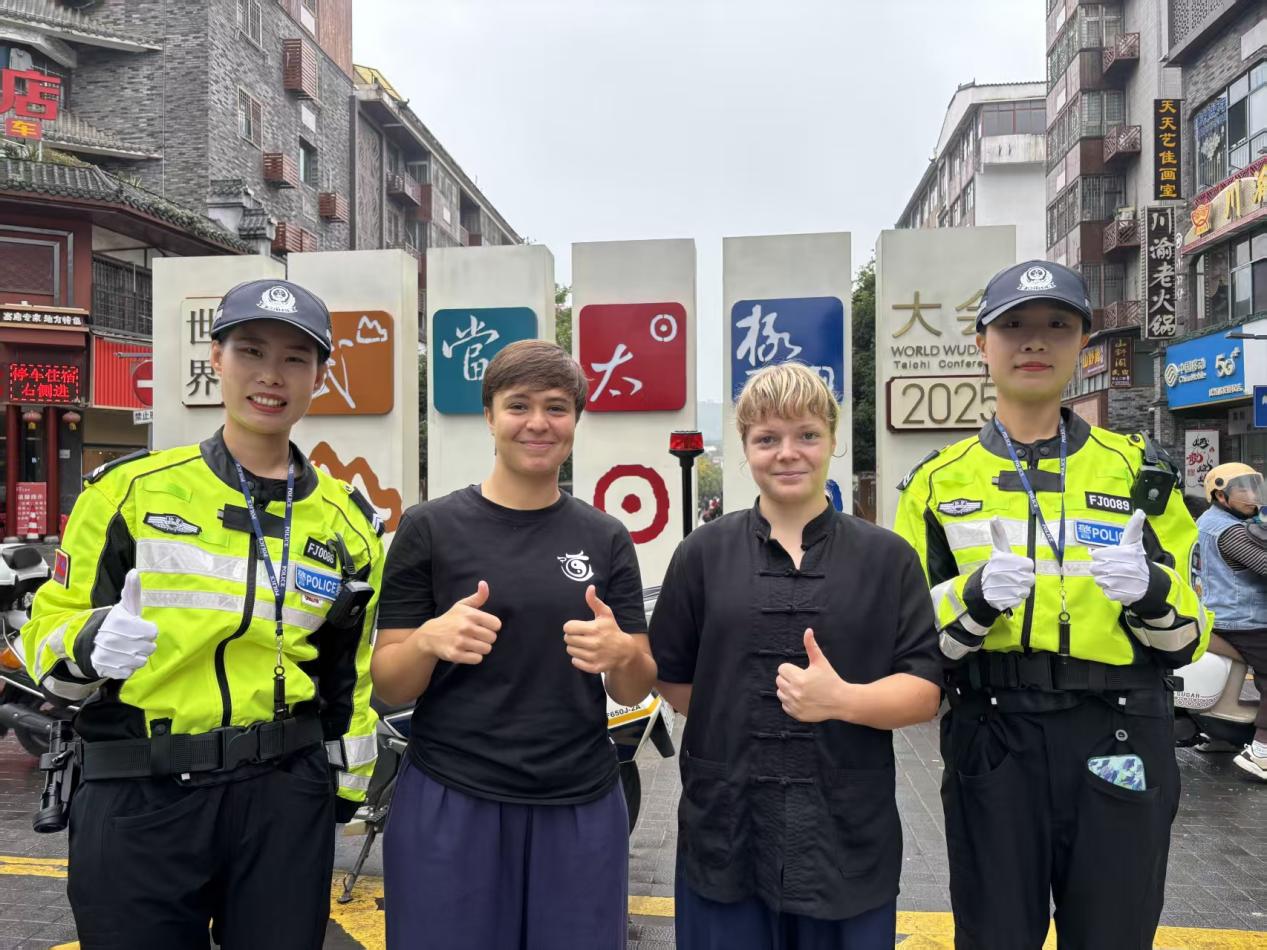 10月4日,两名西班牙游客在武当山玉虚街路口查看地图,面露迷茫。执勤骑警队员见状主动上前,以流利英语询问需求。在明确他们要去玉虚宫后,队员不仅清晰指引路线,还贴心提醒注意安全。临别时,外国友人对她的热情帮助称赞不已,并高兴地邀请合影留念。