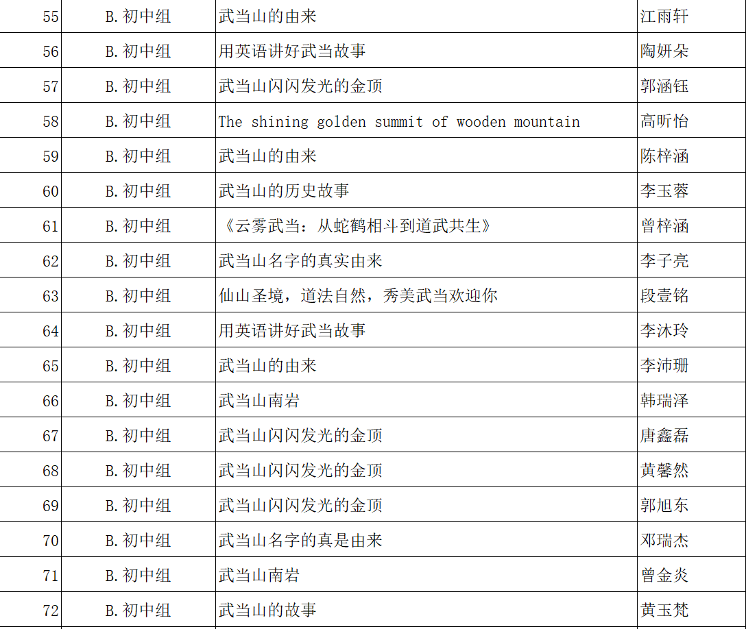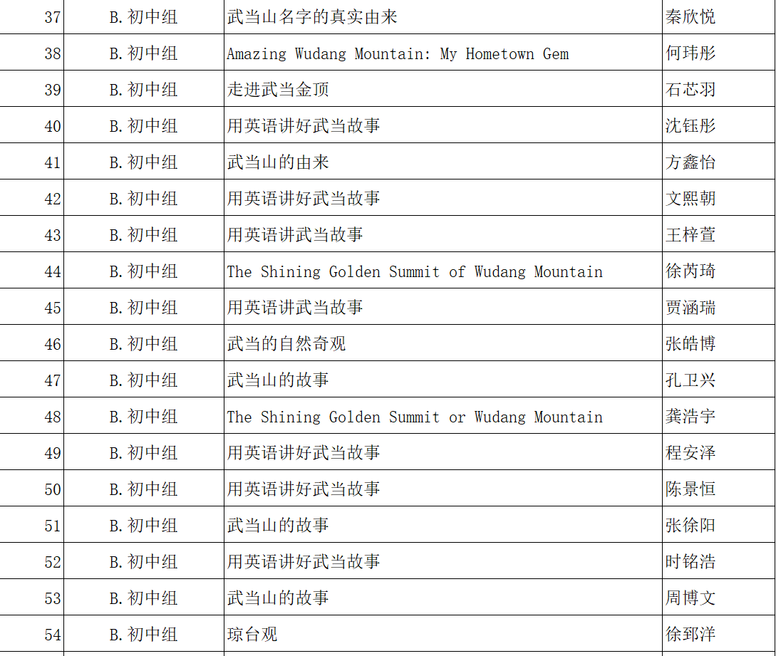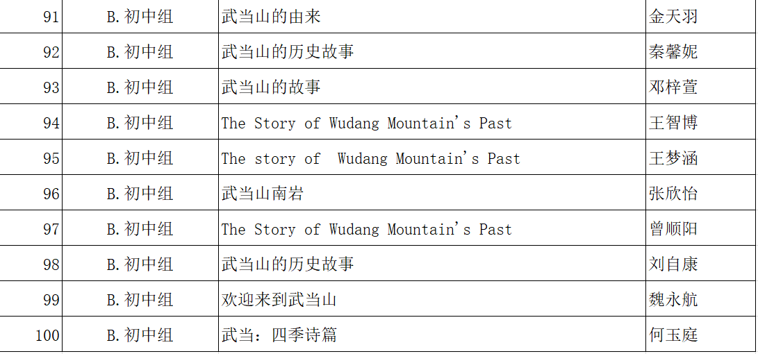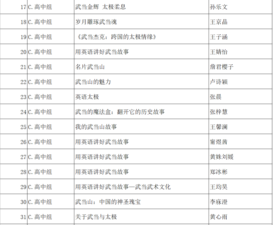 没有进入前100名的参赛选手,同样值得掌声和鼓励。大赛组委会表示:“你们在比赛中锻炼了自己,提升了英语水平和表达能力,为传播武当文化做出了宝贵贡献。每一份参与都是对文化的致敬,每一次尝试都是对传统的创新。”