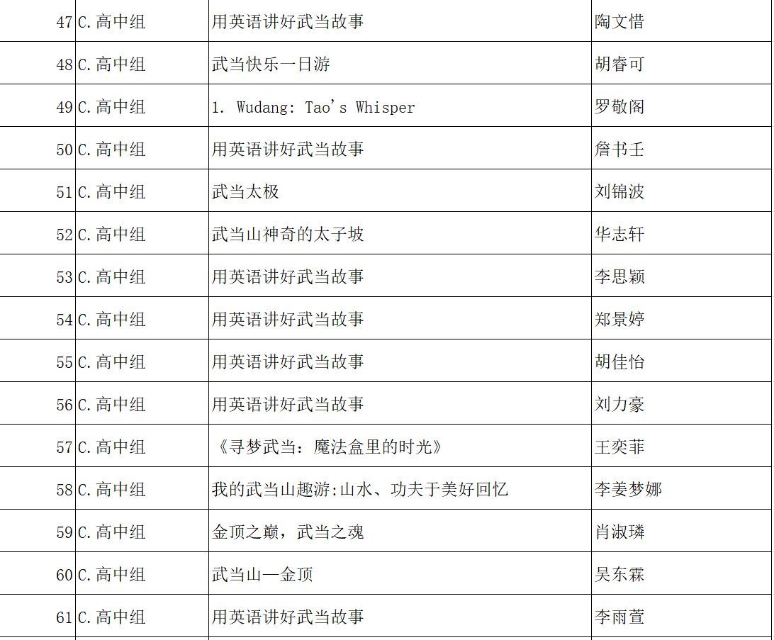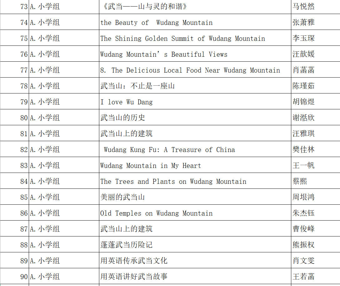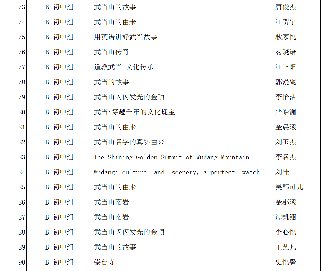 没有进入前100名的参赛选手,同样值得掌声和鼓励。大赛组委会表示:“你们在比赛中锻炼了自己,提升了英语水平和表达能力,为传播武当文化做出了宝贵贡献。每一份参与都是对文化的致敬,每一次尝试都是对传统的创新。”