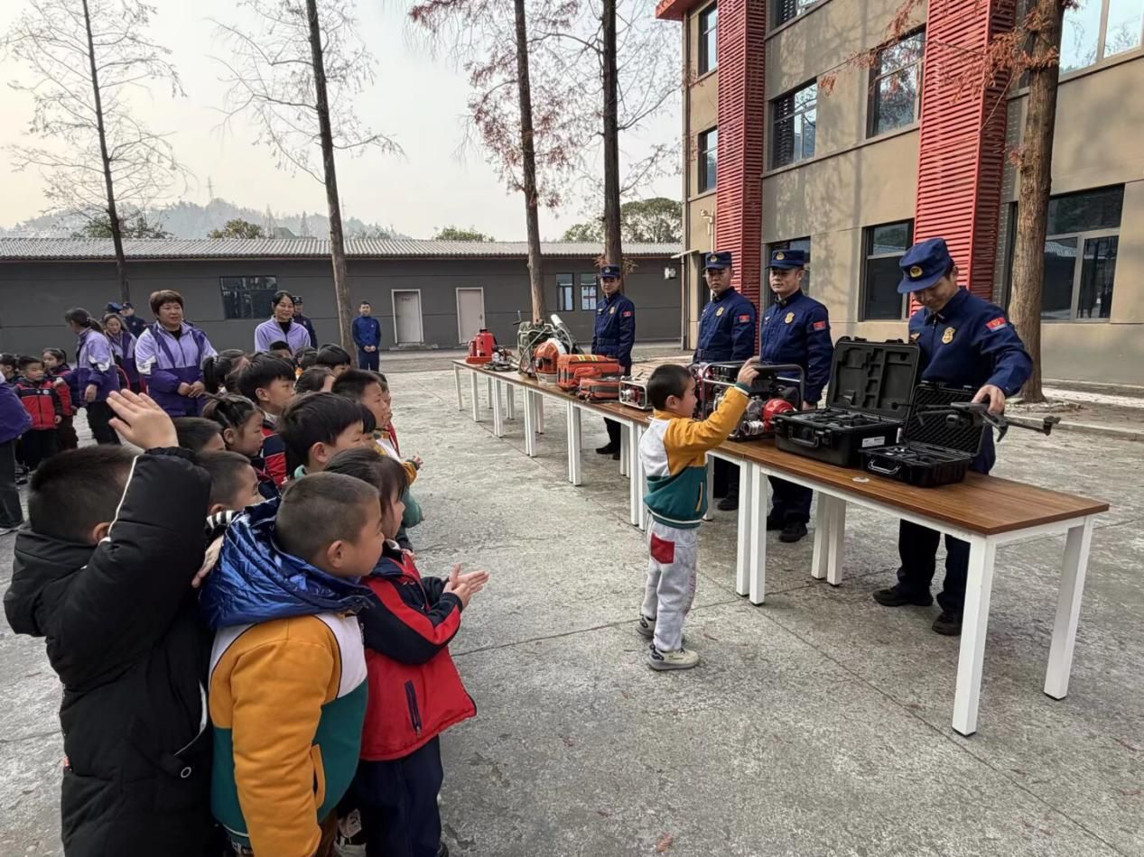 活动现场,消防队员向孩子们展示了日常训练内容,包括队列与攀爬训练,其整齐划一、训练有素的形象赢得孩子们阵阵掌声。在器材展示区,消防员用浅显易懂的语言介绍了夜视仪、抽水机、链锯等多种消防装备的用途,并指导孩子们亲手操作小型水枪等设备,将消防安全知识转化为具象的操作记忆。