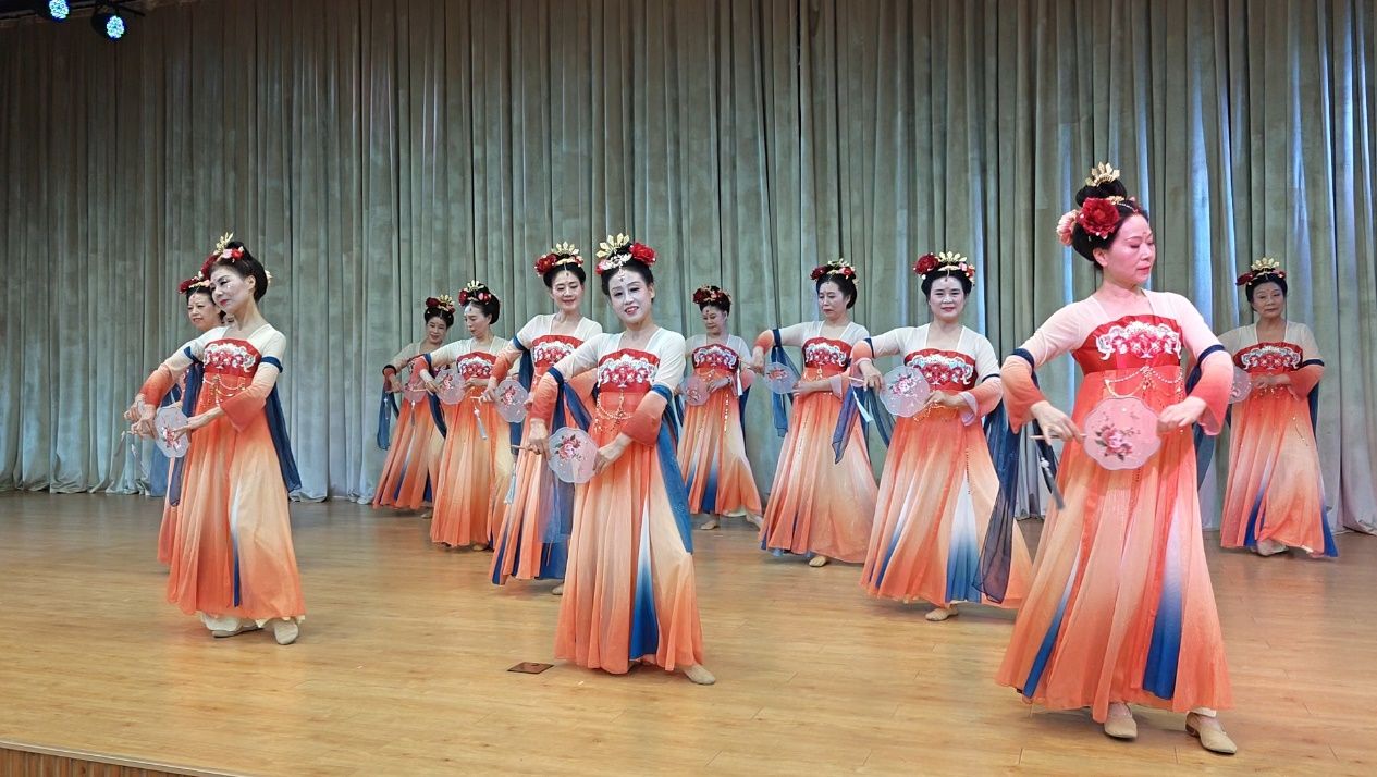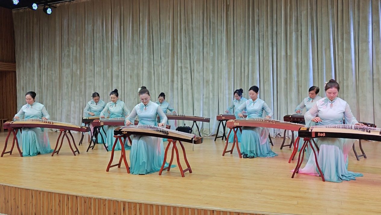 文艺汇演精彩纷呈,学员们各展所长,奉献了一场高质量的视听盛宴。古筝演奏《我的祖国》深情款款,广场舞《五星红旗》活力四射,二胡齐奏《田园春色》悠扬婉转,民族舞《大唐盛世》华美典雅。《红歌联唱》、电吹管演奏《东方红》《我们的中国梦》等节目,抒发了学员们炽热的家国情怀。特色节目武当武术表演《武当神韵》刚柔并济,彰显了地方文化魅力。最后,演出在深情激昂的大合唱《祖国啊!我永远热爱你》中圆满落下帷幕。
