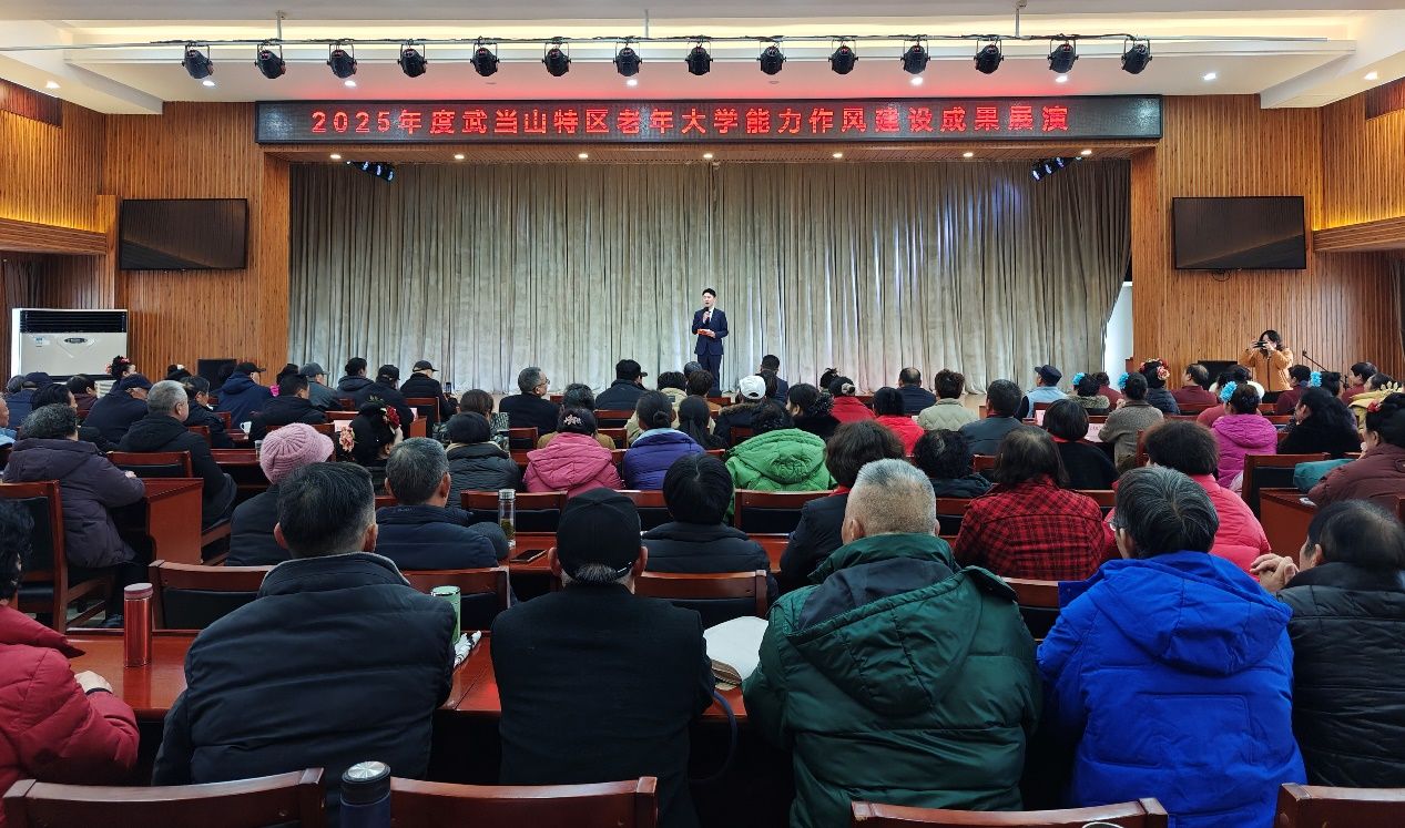 为深入推进全省“干部素质提升年”工作要求,12月26日下午,武当山特区老年大学举行能力作风建设成果展演,师生们以丰富多彩的节目喜迎新年到来,展现老有所学、老有所乐、老有所为的精神风貌以及能力作风建设取得的丰硕成果。