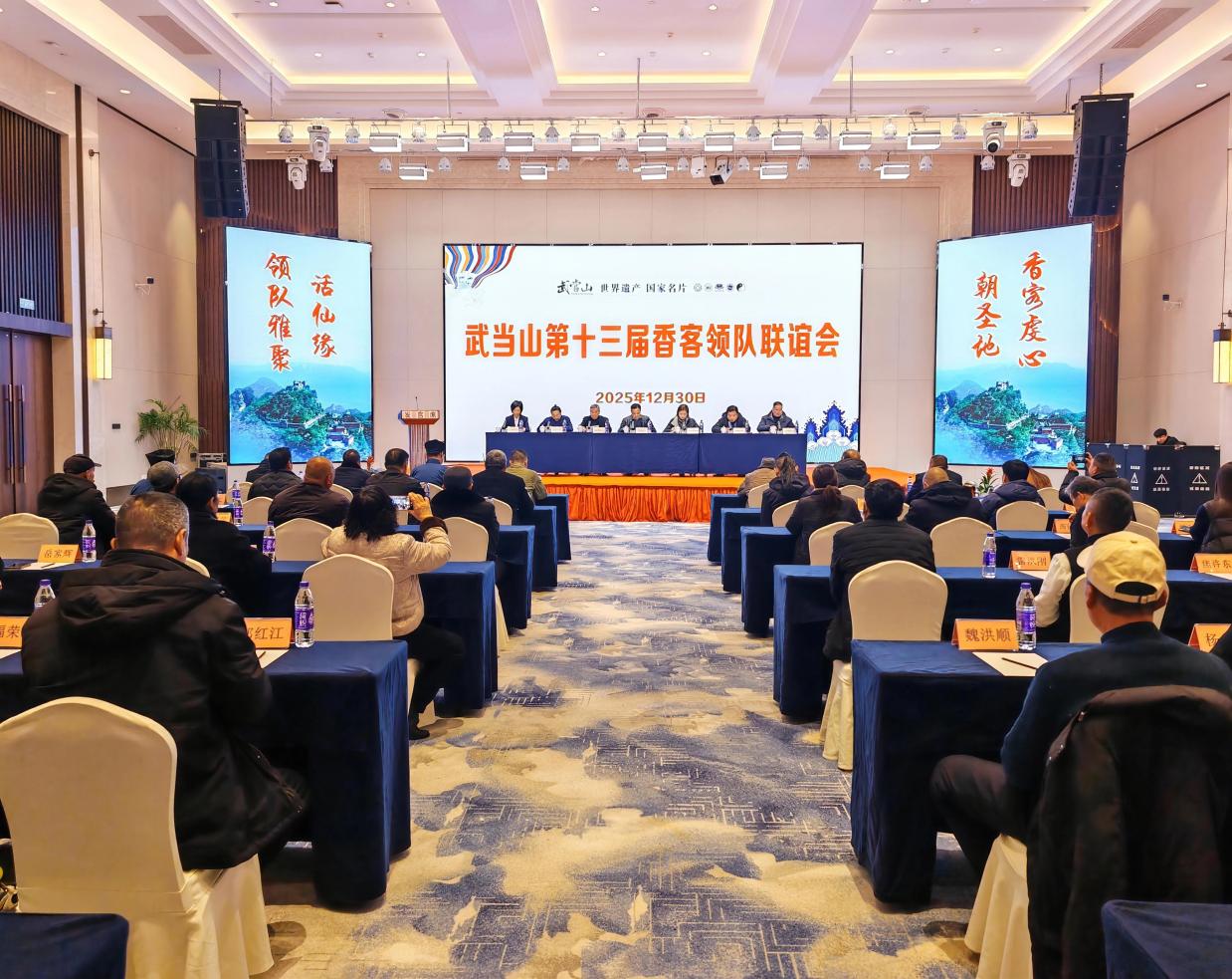12月30日下午,武当山第十三届香客领队联谊会在万达颐华酒店召开,来自全国各地的50余位香客领队齐聚武当山,共绘游客市场发展蓝图。