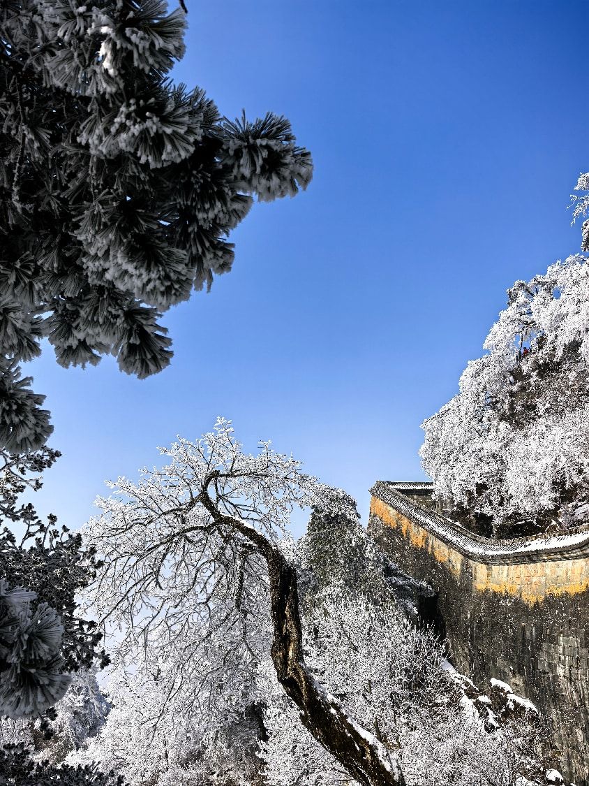 1月31日,武当山特区迎来雪后初霁,澄澈蓝天映衬着银装素裹的古建奇峰,冬日仙韵尽显。 据悉,入冬以来,武当山已累计降雪七场,景区通过引入专业团队、优化保障方案,构建起高效除雪体系,成功破解冬游通行难题。 景区除雪模式全面升级,“冬雪可赴、美景可及”已从期待变为现实,游客得以沉浸式邂逅武当冬雪盛景。 (武当融媒记者 刘雪琴) 一审 :李仰 二审 :徐刚 三审 :王虹