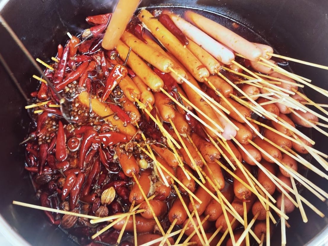 武当特色卤火腿肠、卤鸡蛋,经秘制老卤慢炖数小时,卤蛋Q弹入味,卤火腿咸香不腻,是逛山解馋的绝佳选择。摊位设于武当山供销商场门口。