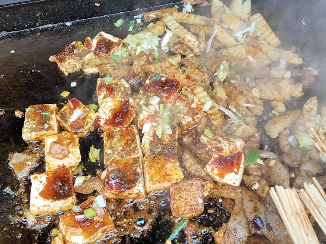 位于玉虚路10—3号的巧婆婆铁板烧现烤现卖,炭火煎制的食材滋滋作响,裹上秘制酱料,外焦里嫩、香气扑鼻,堪称街头人气王。