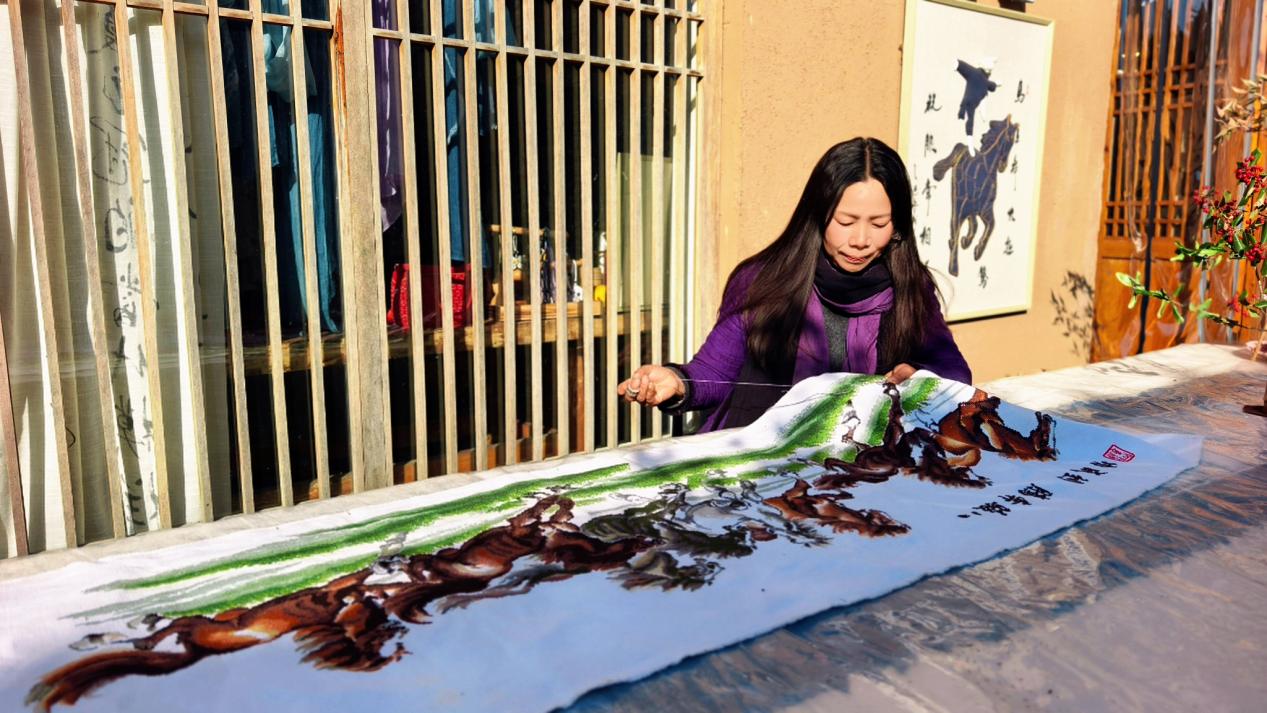 随着春节临近,武当山非物质文化遗产“武当祝服盘扣”代表性传承人祝吉珍,携最新力作手工十字绣《八骏图》温情亮相。