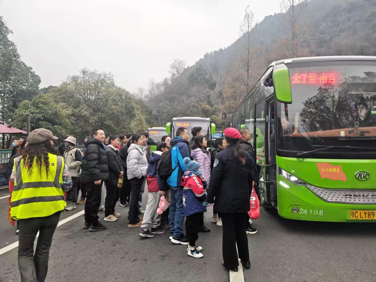 游客在太子坡有序排队候车。(通讯员 陈荣星摄)