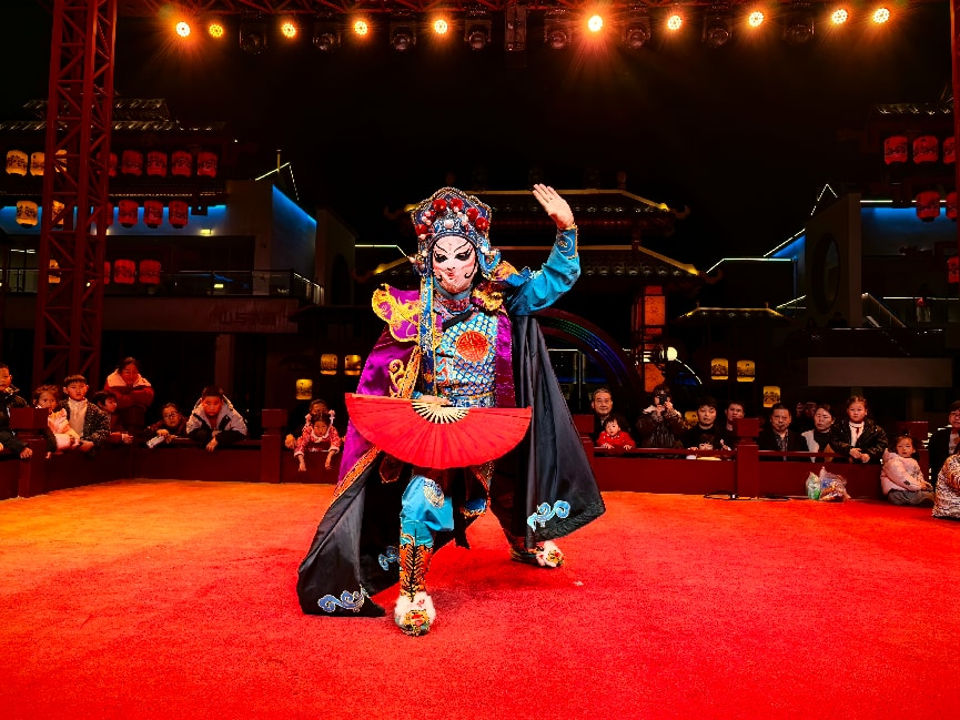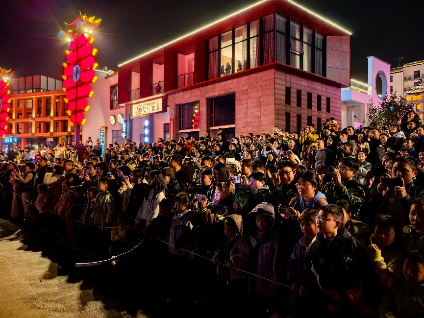 春节期间,“太极之夜”春节演出活动在“太极之夜”文旅街区举行,民俗展演、非遗展示、武术表演、杂技演出为游客呈现了一场精彩的文化盛宴。(武当融媒记者 刘雪琴 摄)