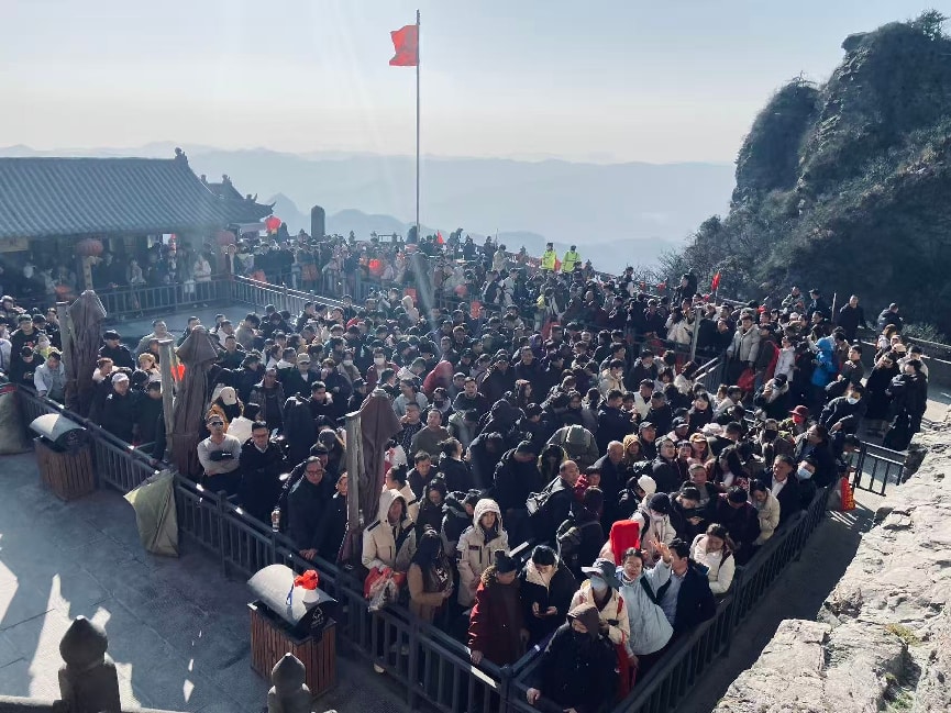 武当金顶景区人气旺盛,游客文明排队。拾级而上,登高祈福。(通讯员 王菡萏 曹圣 林鑫宇摄)