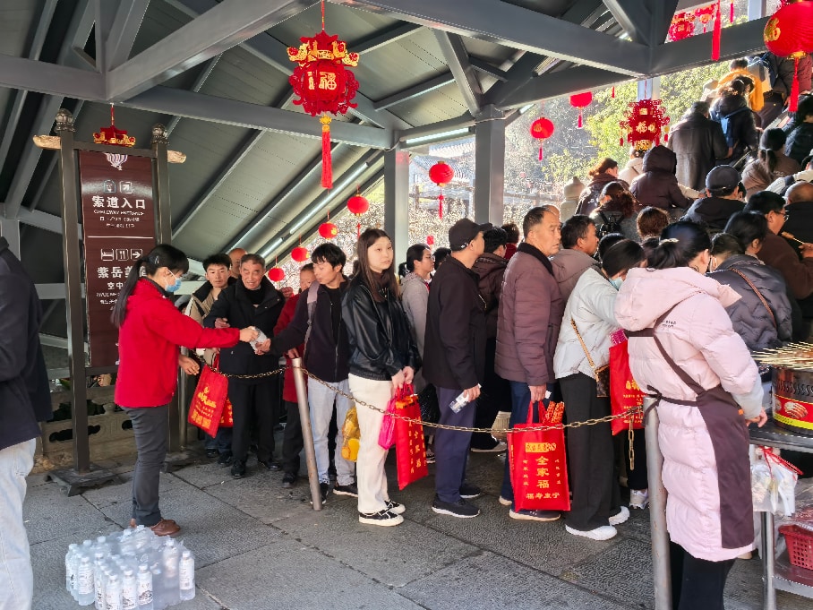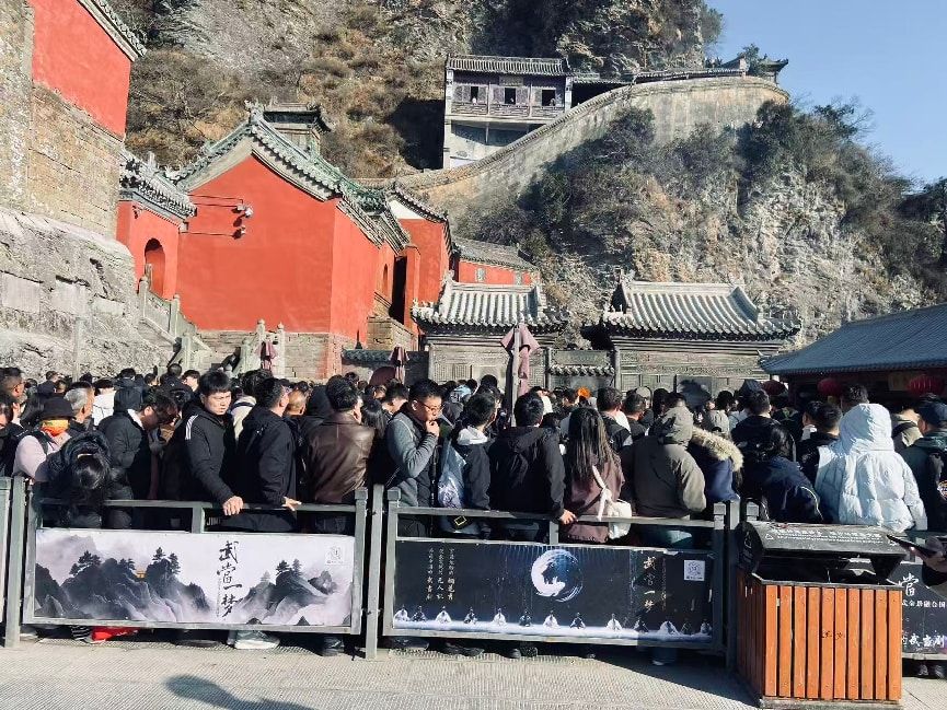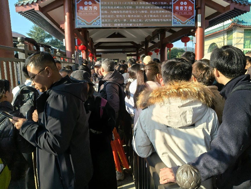 今天是2月21日,农历正月初五,民间俗称“破五”,也是迎接财神的好日子。武当山晴空万里、阳光明媚,各地游客慕名而来登高祈福,出游热情持续高涨。景区内特色活动精彩纷呈,旅游环境繁荣有序,文旅市场持续火爆,处处洋溢着喜庆热闹的节日氛围,为八方游客带来了一场别具韵味、难忘舒心的新春之旅。