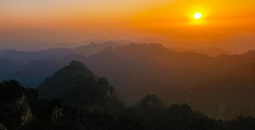 上午7点,北京游客在武当山本来民宿定格绝美武当日出。朝阳下,金殿熠熠生辉、金碧辉煌。(通讯员 娄玉山 摄)