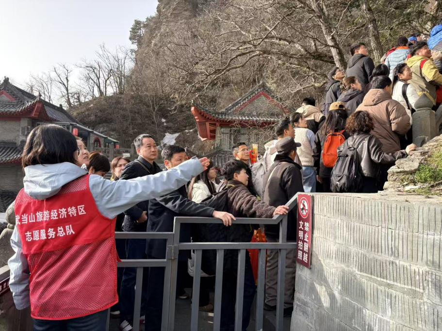 今天是2月22日,农历正月初六,新春佳节已步入尾声,但武当山景区依旧游人如织、热度不减。游客们怀揣着对仙山的向往,从各地纷至沓来,登高赏景、祈福纳祥,沉浸式感受武当山的秀美风光与深厚文化底蕴。