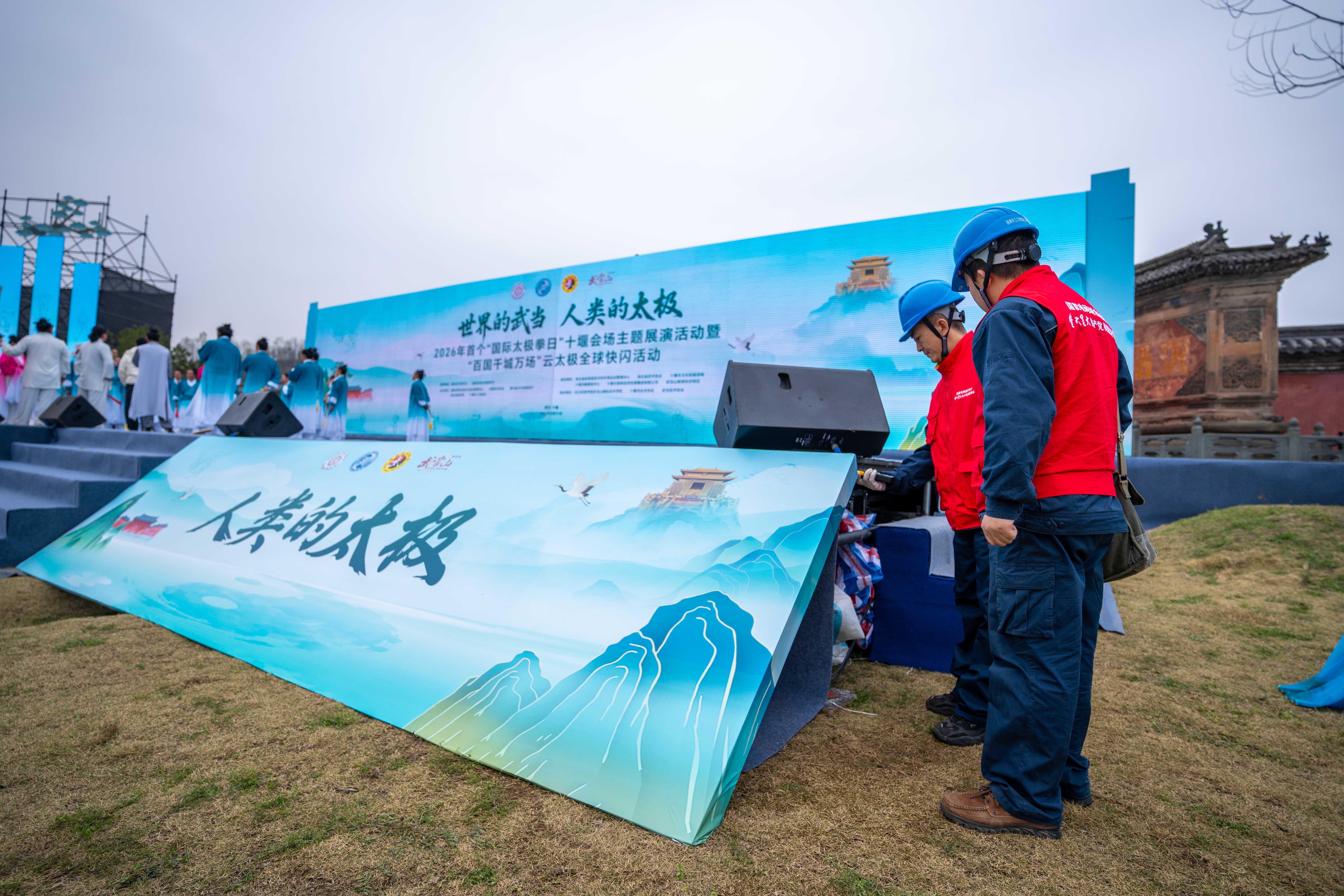 3月19日,2026年首个“国际太极拳日”十堰会场主题展演活动暨“百国千城万场”云太极全球快闪活动全流程、全要素安保和服务保障演练在遇真宫举行。武当山供电所以细致的设备排查、严谨的现场值守和实战化应急演练,为本次演练活动筑牢安全防线。