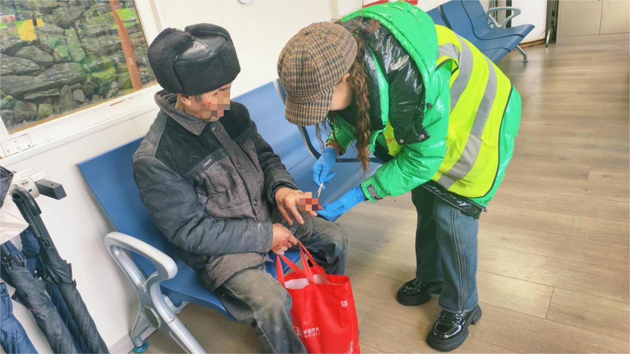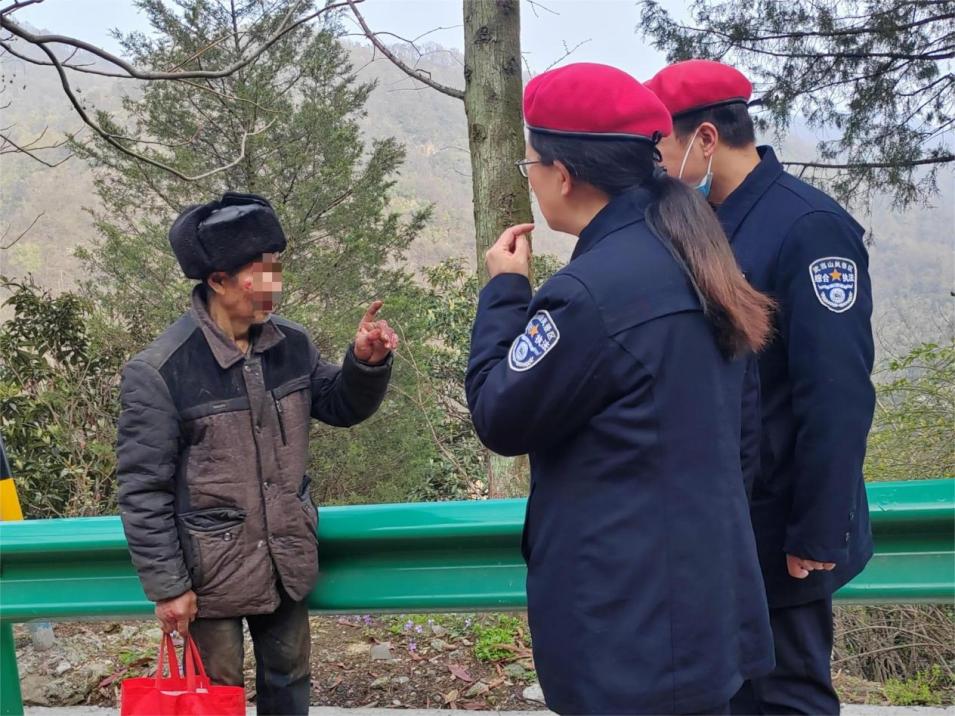 景区服务不仅面向八方游客,也温暖着周边群众。在一次日常巡查中,太子坡中队工作人员发现太子坡村一名五保户老人不慎摔倒,身上多处擦伤。队员们立即上前安抚情绪,取出急救包对伤口进行规范清洗、消毒与包扎,并第一时间对接村两委,协调村干部将老人安全接回家中妥善安置。