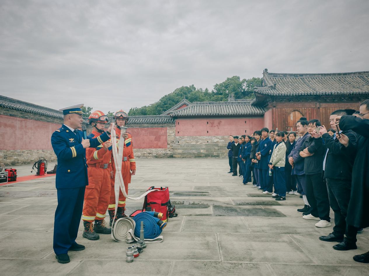会上,全体人员集中观看火灾警示教育片,以真实案例深刻剖析文物古建筑火灾事故教训,进一步绷紧消防安全思想之弦。实操培训中,消防救援人员针对文物场所应急处置需求,现场演示消防水带连接、水枪操作、便携式灭火装备使用等基础技能;参训人员逐一上手实操,在专业指导下完成出水灭火演练,切实提升应急处置实战能力。