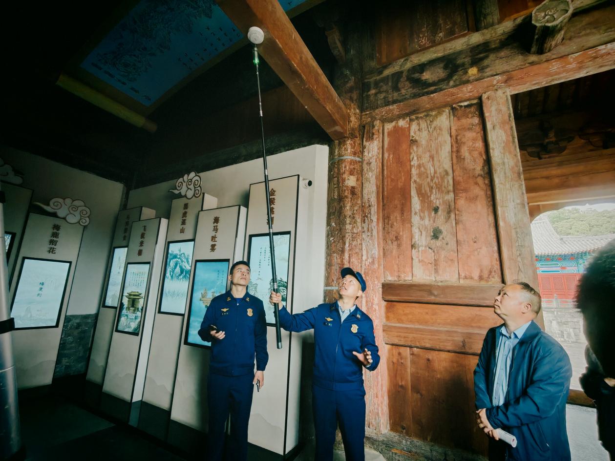 现场示教环节,消防救援人员结合遇真宫木质结构集中、隐蔽空间多的特点,指导参训人员排查电气线路敷设、木结构防火防护、消防设施运维等关键环节隐患,讲解隐患分级判定、登记整改、复查销号全流程规范,有效提升隐患排查实操能力。